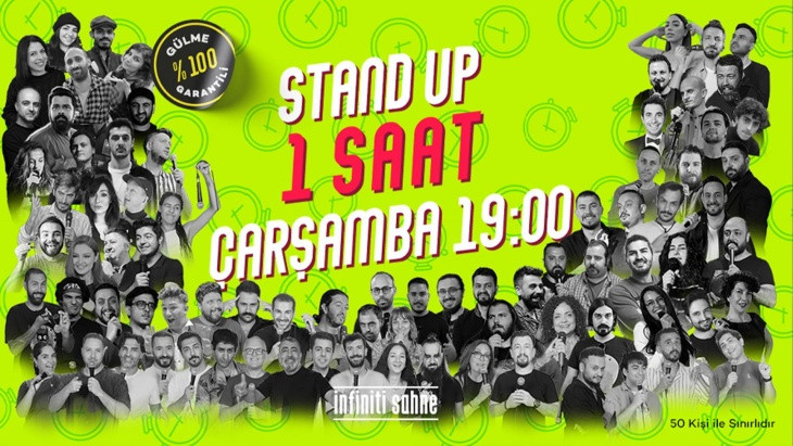 İnfiniti Sahne’nin yeni formatı “Stand Up Bir Saat”, iş çıkışı hızlı ve yoğun bir eğlence arayanlara keyifli bir seçenek sunuyor. Sahnede Türkiye’nin çeşitli komedyenleri, tekli ya da ikili performanslarla seyirciye kısa süreye sığdırılmış bol kahkaha vadediyor. Günün stresini atmak isteyenler için tasarlanan etkinlik, tempolu yapısı ve enerjik atmosferiyle dikkat çekiyor. “Kısa, yoğun, kahkahası bol” mottosuyla haftanın ortasına neşe katıyor.