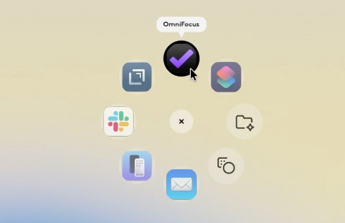 Seçenekler konusunda da esnek davranabiliyorsunuz. Ben en sık kullandığım uygulamaları bu halkaya atadım. Başparmağımı bastırıyorum, imleci azıcık hareket ettiriyorum ve örneğin OmniFocus’a geçiyorum ya da uygulamayı açıyorum.