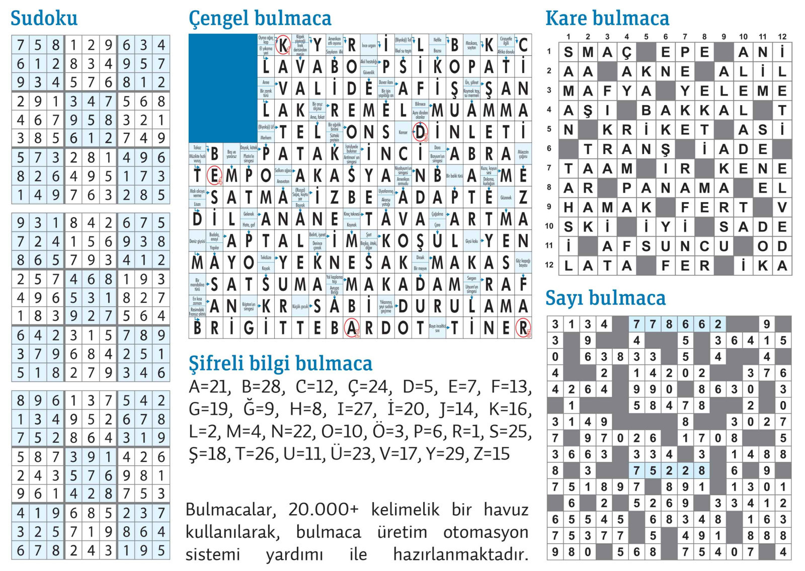 O2'nin 9-15 Ocak 2026 tarihli sayısında yer alan bulmacaların çözümleri