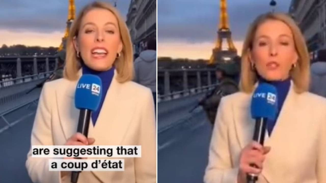 Video, Paris’teki bir hayali gazetecinin “kimliği açıklanmayan bir albay tarafından yönetilen darbe” hakkında konuştuğu sahnelerle yaklaşık 16 milyon kez izlendi. Tepkilerin ardından video, paylaşan kişi tarafından kaldırıldı.