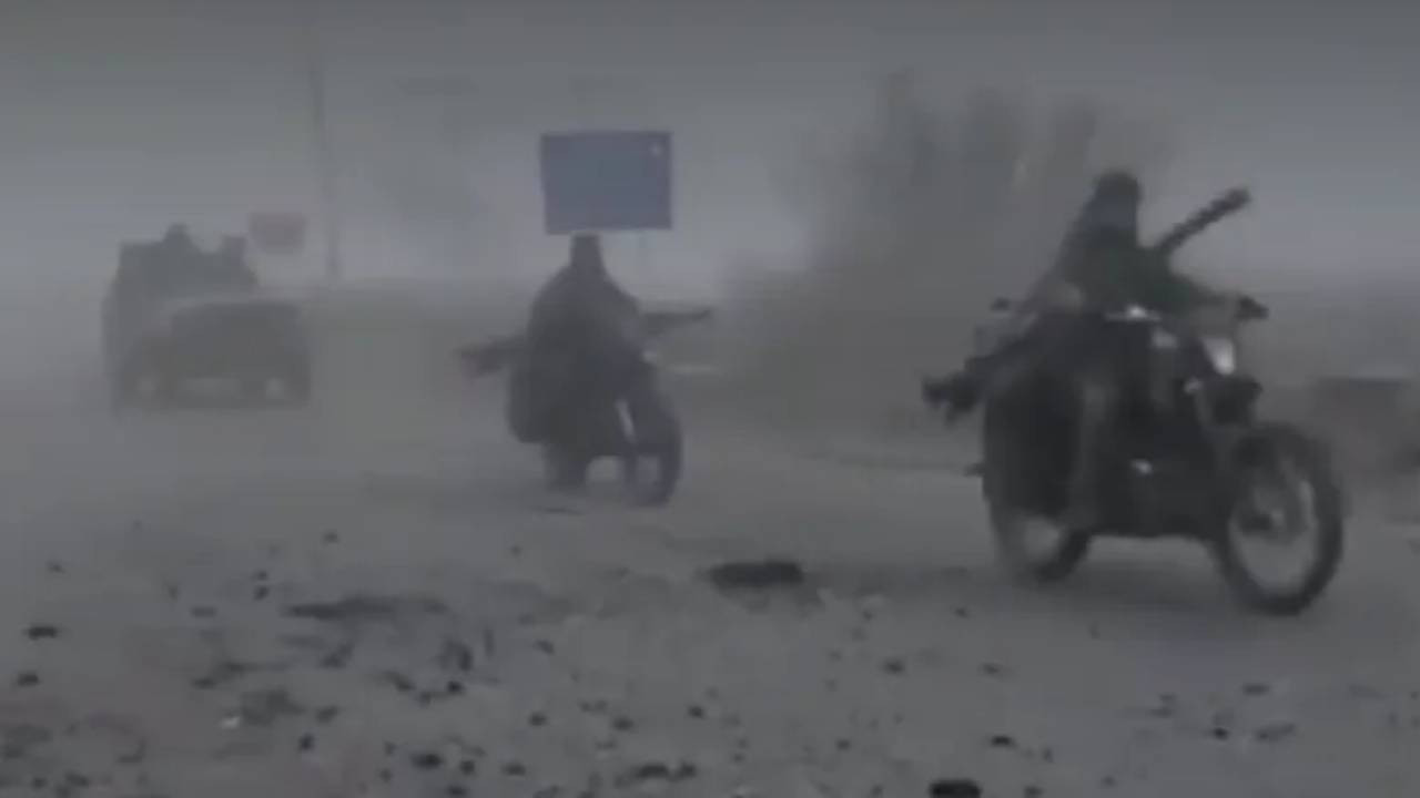 Görüntülerde onlarca motosikletli savaşçının sisli bir yoldan doğrudan şehre gittiği öne sürüldü. Reuters, görüntüyü doğruladı ancak tarih konusunda bir netlik yok.