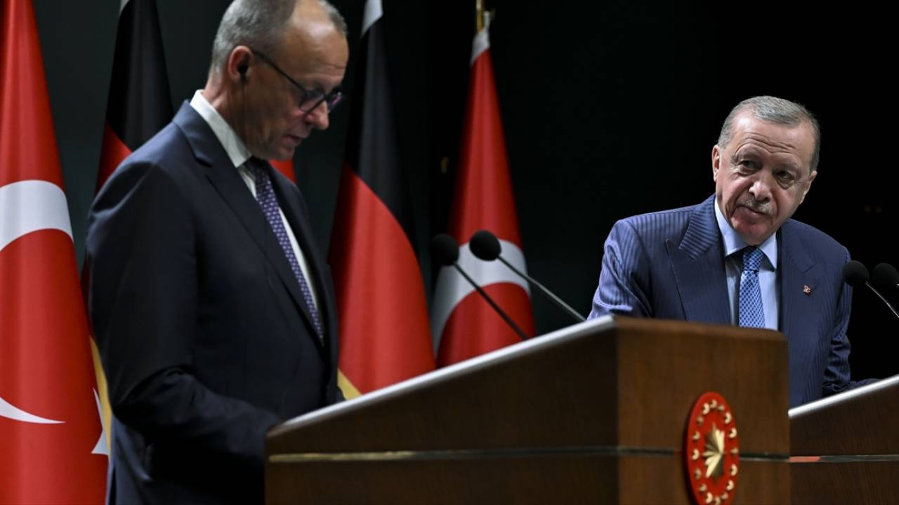 - NTV: Merz, İsrail’e destek verdiğini açıkça ortaya koyarken, Erdoğan ise İsrail’i bir kez daha Gazze’de soykırım yapmakla suçladı. Şansölye, Türkiye’de hukuk devleti ilkelerinin uygulanması çağrısında bulundu; Erdoğan ise yargının yaklaşımını savundu.