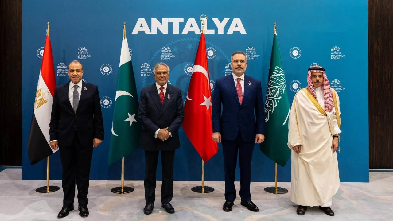 Pakistan, Türkiye, Mısır ve Suudi Arabistan dışişleri bakanları, Antalya Diplomasi Forumu kapsamında bir araya gelerek ABD ile İran arasındaki savaşı sona erdirmeye yönelik diplomatik çabaları ele aldı.