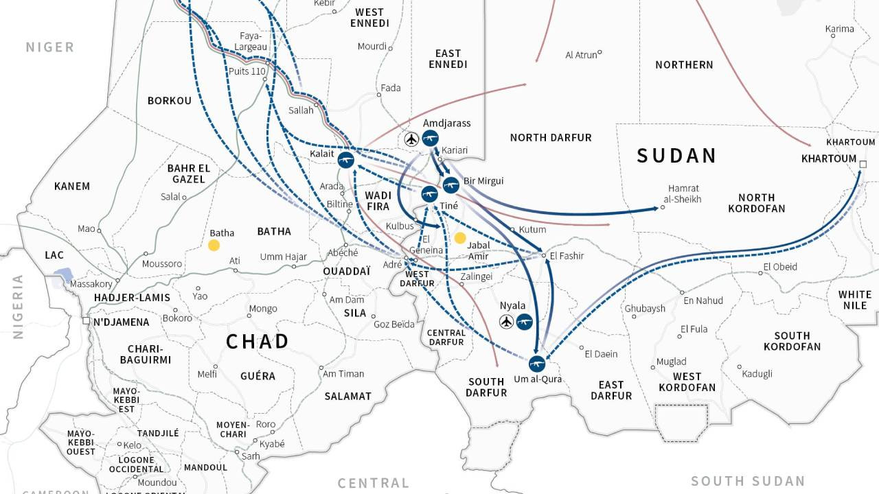 Haziran 2025’te RSF, Libya ve Mısır ile Çad sınırının bulunduğu üçlü bölgeyi ele geçirerek Maaten al-Sarra hava üssünü tedarik hattı olarak kullanmaya başladı ve el-Faşir'e saldırısını sürdürdü.