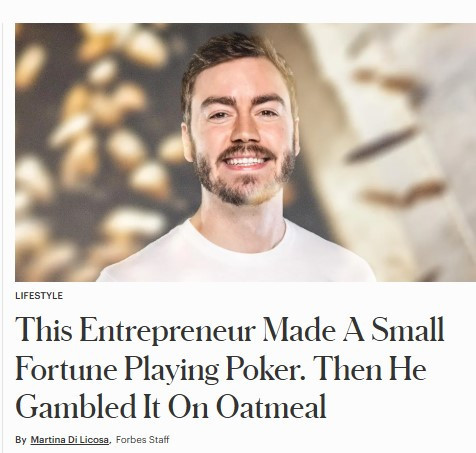 On-the-go kahvaltılık şirketi Oats Overnight’in kurucusu Brian Tate, yirmili yaşlarının büyük bölümünü profesyonel poker oyuncusu olarak geçirdi. Sıklıkla Las Vegas casinolarında No-Limit turnuvalarına katılan ve ülke çapında özel nakit oyunlar oynayan Tate, 29 yaşında poker kariyerini sonlandırırken kazandığı iddiaya göre yaklaşık 10 milyon dolar ile sahneden ayrıldı. Ardından gözünü bir sonraki büyük başarısına dikti.