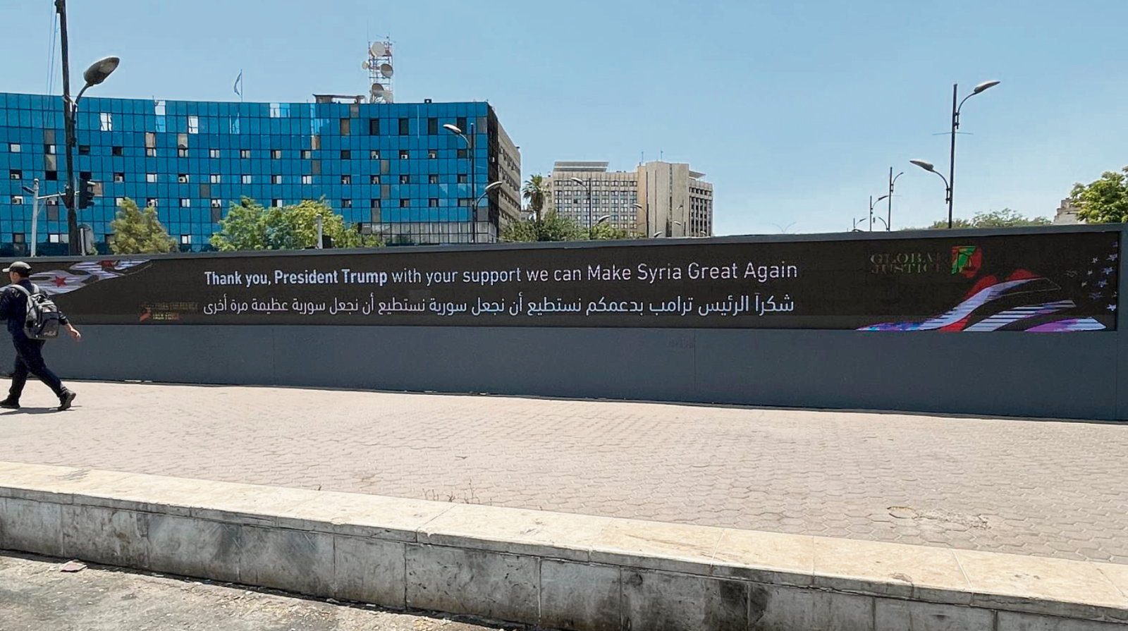 “Teşekkürler Başakn Trump, desteğinizle Suriye’yi tekrar büyük yapabiliriz” yazıldı.