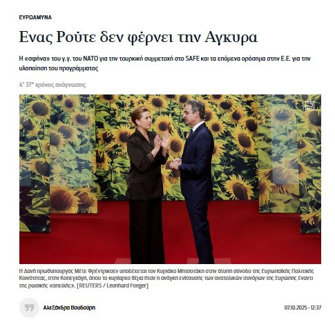 NATO Genel Sekreteri Mark Rutte, geçen hafta Kopenhag’daki Avrupa Siyasi Topluluğu Zirvesi marjında Yunanistan Başbakanı Kiryakos Miçotakis ile görüşerek, Ankara’nın SAFE mekanizmasına katılımı konusunda temaslarda bulundu.