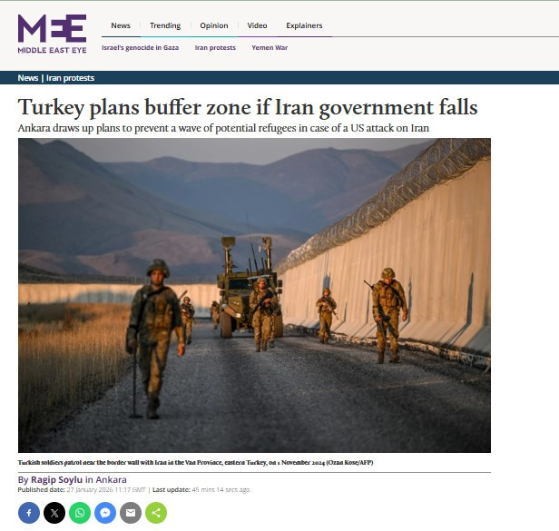 Türkiye’nin İran’a yönelik olası kriz senaryoları için hazırlık yaptığı ve en kötü ihtimalde İran tarafında tampon bölge oluşturmayı değerlendirdiği öğrenildi. Middle East Eye’ın aktardığına göre, üst düzey Dışişleri Bakanlığı yetkilileri perşembe günü TBMM’de milletvekillerine kapalı oturumda brifing verdi. Oturuma katılan iki isim, Ankara’nın “İran’da hükümet çöküşü” dahil farklı senaryoları ele aldığını aktardı.