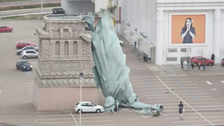 Brezilya’nın Rio Grande do Sul eyaletine bağlı Guaíba kentinde bulunan Özgürlük Heykeli replikası, şiddetli rüzgâr nedeniyle devrildi.