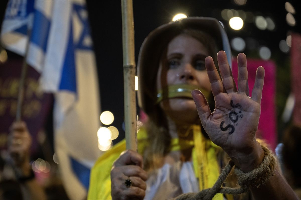 İsrail'in başkenti Tel Aviv'de on binlerce kişi, Savunma Bakanlığı binası önünde toplandı. İsrail bayraklarının yanı sıra "Sen baştasın, sen suçlusun", "Bu savaşı bitir", "Esirleri geri getirin" yazılı pankartlar taşıyan göstericiler, attıkları sloganlarda Netanyahu hükümetini anlaşmayı engellemekle suçladı.