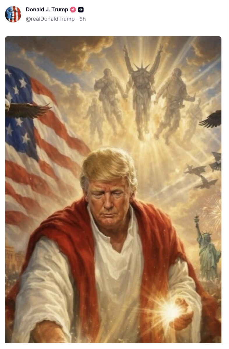 Trump, bu açıklamalara Truth Social hesabından “Papa Leo suç konusunda zayıf, dış politikadaysa korkunç” diye yanıt verdi ve ardından yapay zekayla üretilmiş, kendisini insanları iyileştiren ‘İsa peygamber’ gibi gösteren bir görsel paylaştı.