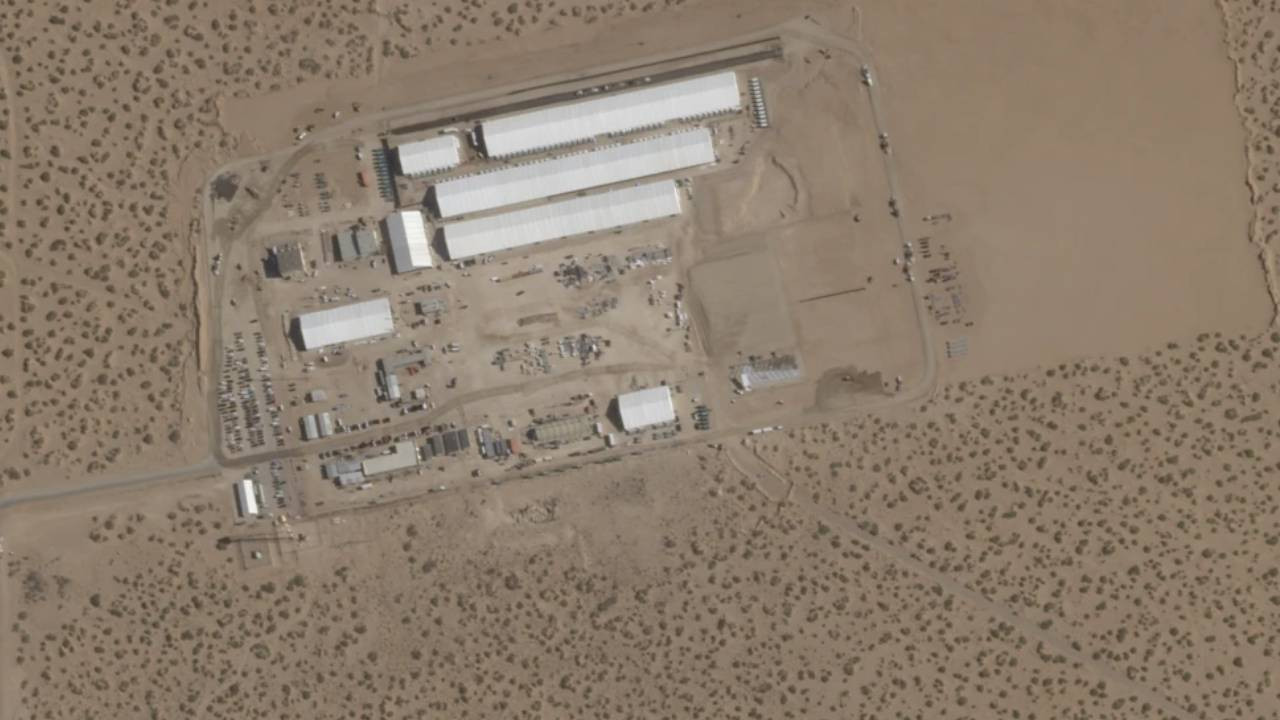 Üç beyaz çadır, her biri yaklaşık 250 metre uzunluğunda, uydu görüntülerine göre inşa edildi. Çadırların çevresinde yarım düzine küçük yapı bulunuyor.