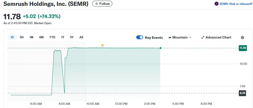 Arama motoru optimizasyonu araçları sunan Semrush, 2021’de halka açıldı. En büyük müşterileri arasında Amazon ve TikTok bulunuyor. Hisseler, salı gününü 6,76 dolardan kapatmıştı.
