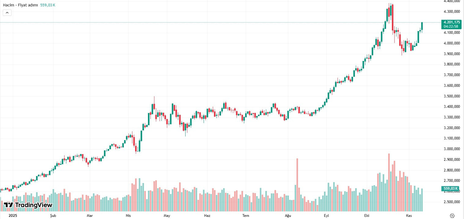 Spot altın, TSİ 20.29 itibarıyla yüzde 2 artışla ons başına 4.200 dolara çıkarak 21 Ekim’den bu yana en yüksek seviyesine ulaştı.