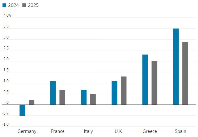 Yunanistan %2,3 büyürken, bu oran Fransa ve Birleşik Krallık’ın büyüme hızının iki katından fazla. Almanya ise üst üste ikinci yıl daralma yaşadı.