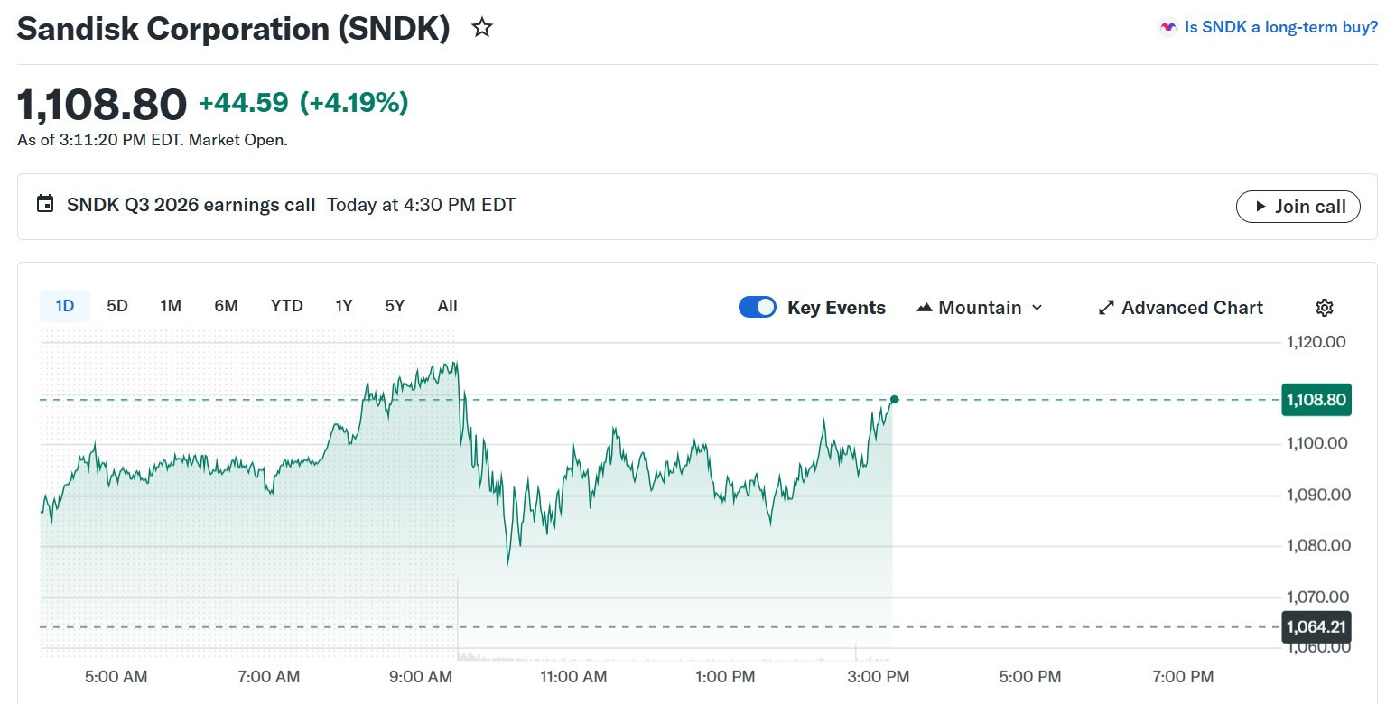 Flash depolama şirketi Sandisk’in hisseleri, yapay zeka veri merkezlerinden hızla artan talep, kısıtlı stoklar ve yükselen fiyatların etkisiyle son bir yılda %3.300 yükseldi.