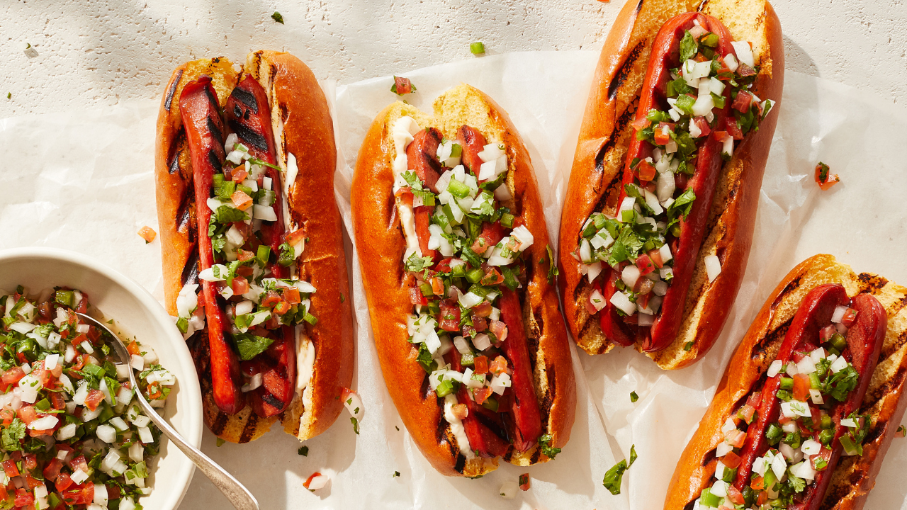 - Pişmiş sosisleri kızarmış ekmeklerin içine, kesik yüzü yukarı bakacak şekilde yerleştirin. Açılan kısımlara bolca pico de gallo doldurun. Hemen servis yapın, artan pico de gallo’yu yanına koyabilirsiniz.