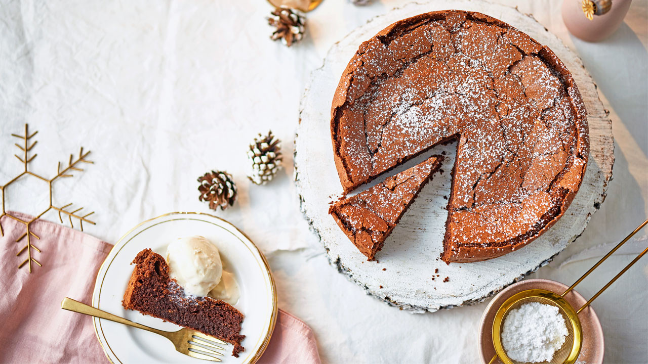 - Eğer kek dondurulmayacaksa, fanlı ayarda 160 °C’ye ısı ığınız fırında 35-45 dakika pişirin. Dondurduğunuz keki pişirmek için, fırını aynı şekilde ısıtın. Ortasına batırdığınız bir şiş neredeyse temiz çıkacak ve üzerinde sadece birkaç kırıntı kalacak şekilde 55-60 dakika pişirin. Kalıbın içinde ılınmaya bırakın, sonra dikkatlice kalıbın tabanını ve kenarlarını ayırın. Üzerine pudra şekeri serpin ve isteğe göre vanilyalı dondurma ile servis edin.