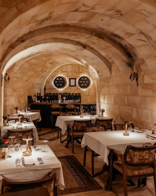 Şık yemek deneyimi sunan Revithia her detayında gösterdiği özeni belli eden yerlerden. Servisten yemeklere, ambiyanstan masa mesafelerine kadar detaylarla misafirlerinin mutlu ayrılmasını sağlıyor. Kapadokya’nın büyülü ortamında, özenli yemek için tercih edilebilir. Mekanın şarap eşleştirmelerinin de çok beğenildiğinin altını çizmek gerek.