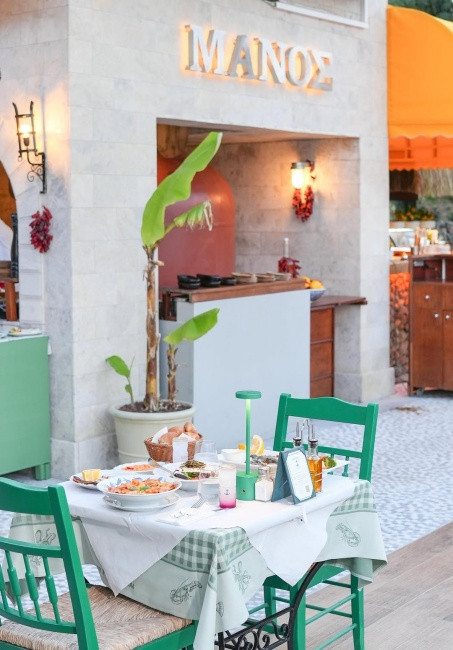 İlhamını Ege Denizi’nin kültüründen alan Manos, misafirlerine mükemmel bir Yunan tavernası deneyimi yaşatıyor. Yunan ezgileri eşliğinde dansların sahne aldığı mekanda konsepte uygun olarak mezeler ve deniz lezzetleri sunuluyor.