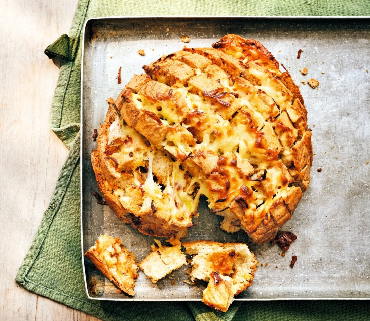 - 20 dakika piştikten sonra üstteki folyoyu alın ve peynir eriyip altın rengi ve kıvamlı hale gelene kadar 10 dakika daha fırında pişirin. Herkesin koparıp paylaşabilmesi için bütün olarak servis edin.