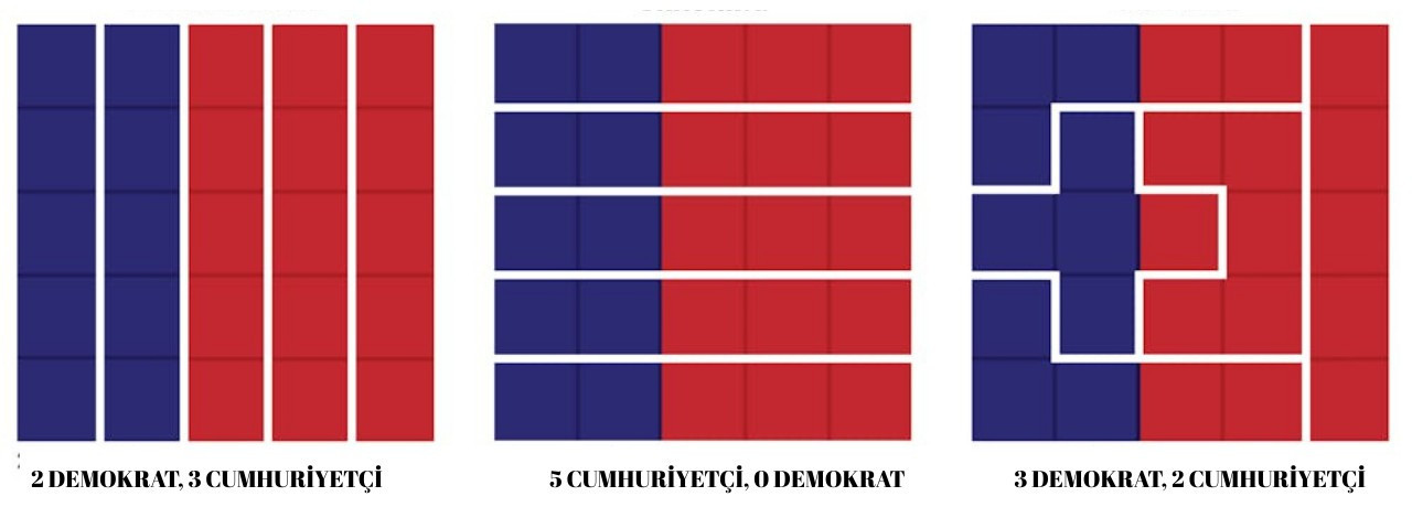 | Oksijen'in notu: Gerrymandering nedir? ABD siyasetinde seçim bölgelerinin sınırlarının, bir partiye rakipleri üzerinde haksız bir avantaj sağlayacak şekilde çizilmesine gerrymandering denir. Başka bir deyişle, seçim bölgelerinin sınırlarının çizilmesi, iktidardaki partinin yetkilileri tarafından, karşı partiden seçmenleri bölgelere dağıtmak veya kendi adaylarına rekabet avantajı sağlamak için kullanılabilir. Alternatif olarak, karşı partiden seçmenler, karşı partinin kontrol edebileceği sandalye sayısını azaltmak için azınlıktaki oy bölgelerine sıkıştırılabilir.