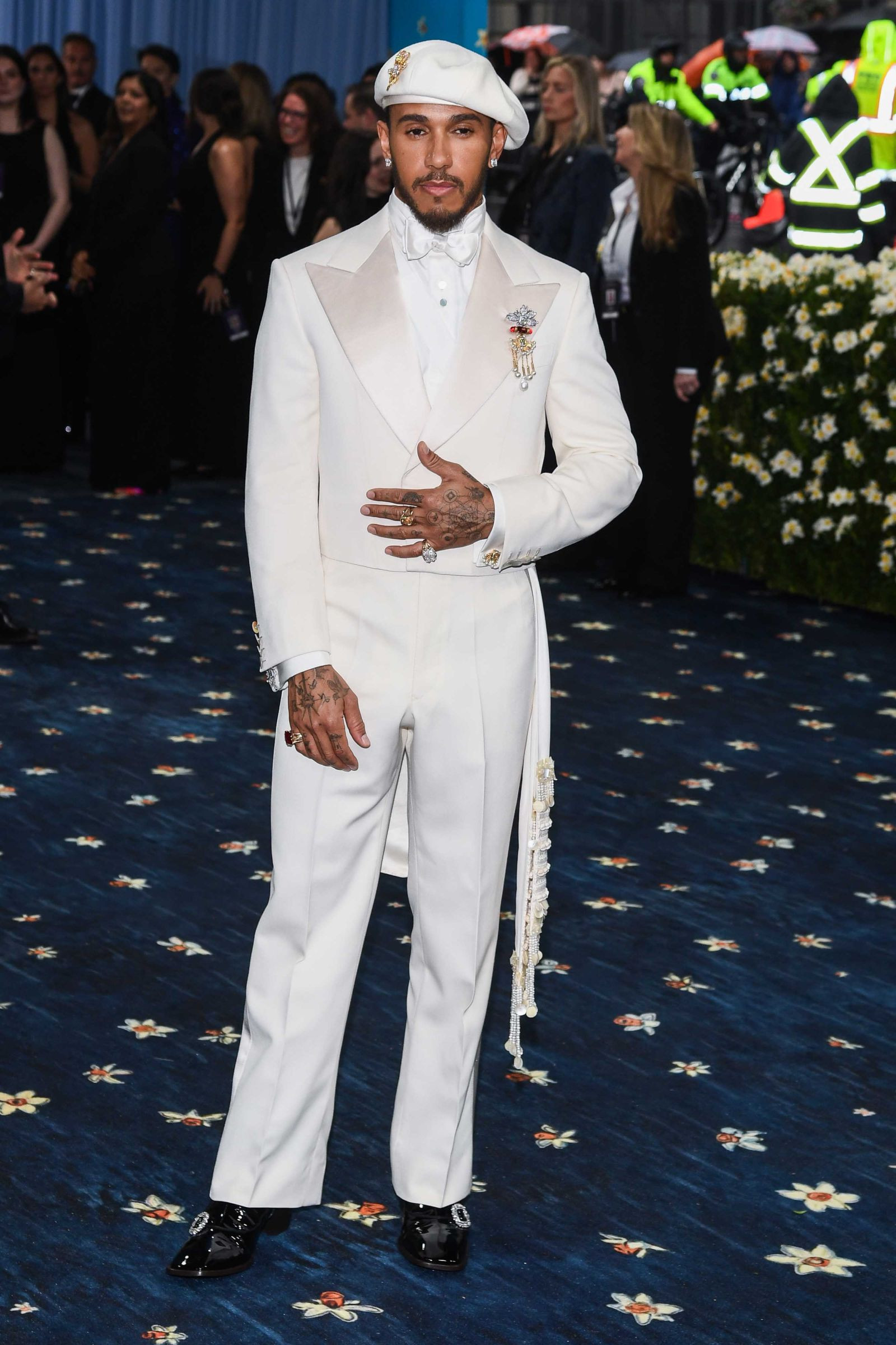 Gecenin ev sahiplerinden biri de Formula 1 performansı kadar stiliyle de adından söz ettiren Lewis Hamilton'dı. Eric McNeal tarafından tasarlanan smokin ve papyondan oluşan tamamen bej bir takım tercih eden Hamilton, kıyafetini uyumlu bir bere ve yakasındaki broş da dahil olmak üzere altın aksesuarlarla tamamladı. Tüm aksesuarlarının bir sembol olduğunun altını çizelim.