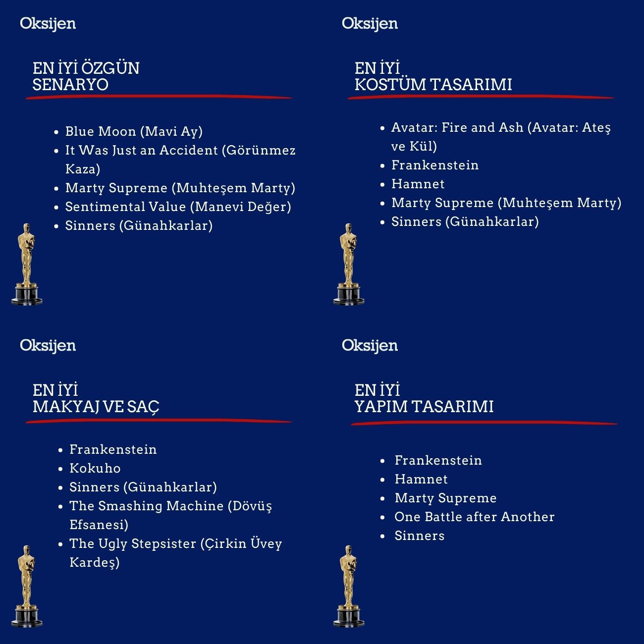 ‘Özgün Senaryo’yu “Sinners” rahatça alacak gibi görünüyor. “Frankenstein”ın da 9 adaylığı var ama en fazla 3 tanesinde şansı yüksek. Onlar da ‘Yapım Tasarımı’, ‘Kostüm’ ve ‘Makyaj ve Saç Tasarımı’.