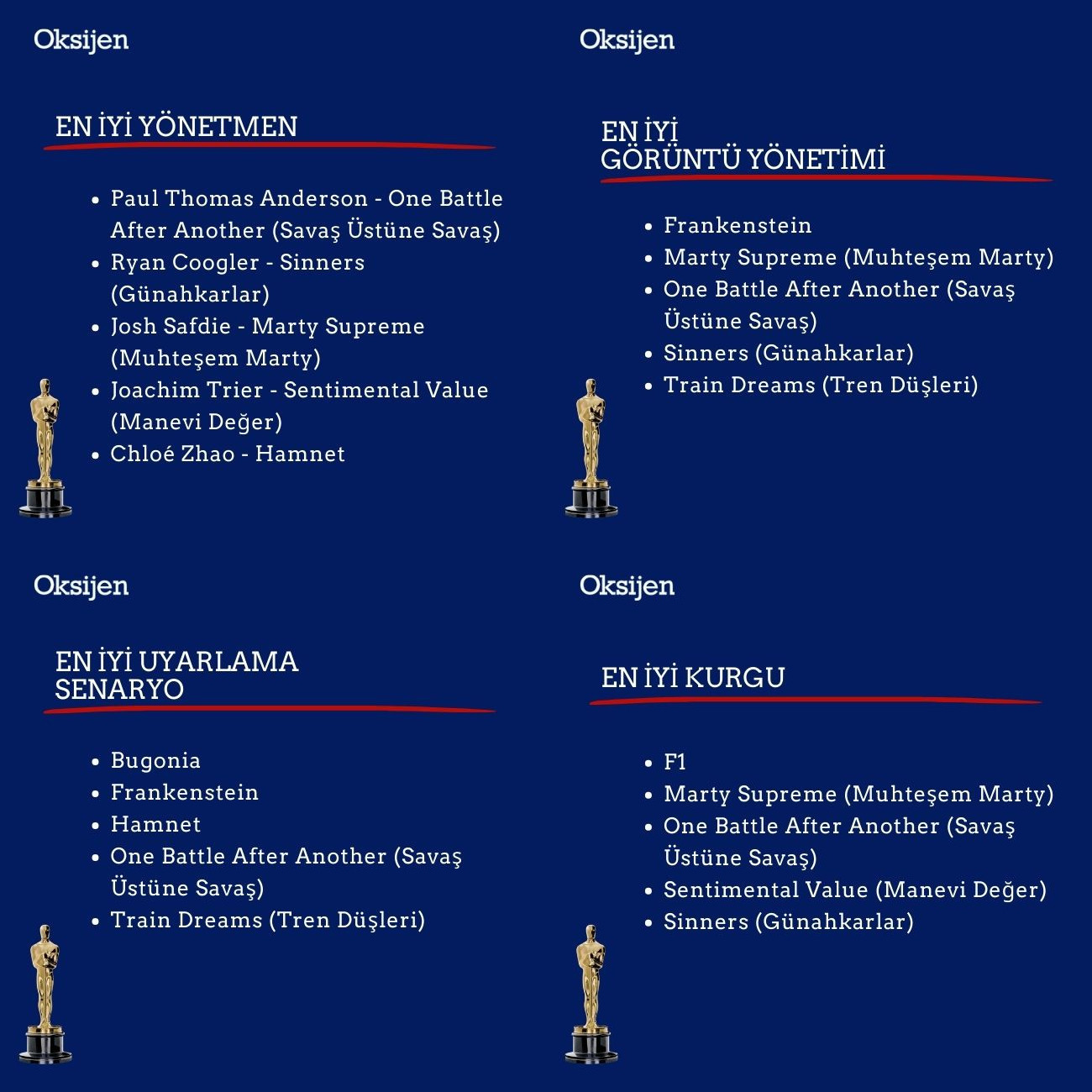 Bu kategorilerde de en güçlü adayın “Savaş Üstüne Savaş” olduğunu düşünüyorum. Belki “Uyarlama Senaryo”da Hamnet’in bir sürprizi olabilir. Ama aslında Maggie O’Farrell’ın romanı senaryodan daha iyi.