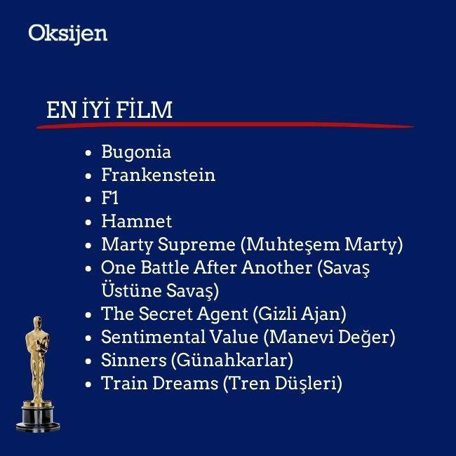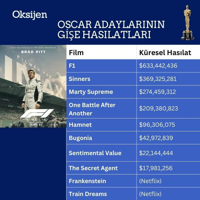 Bu arada en iyi film adaylarında en yüksek gişeyi yapan film, neredeyse herkesin bu listede yer almaması gerektiğini düşündüğü “F1”. Bir dönem Hollywood, gişe filmlerinin Oscar’larda teknik dallar dışında aday olamamasından şikayetçiydi. Son yıllarda bu sorun pek kalmadı.