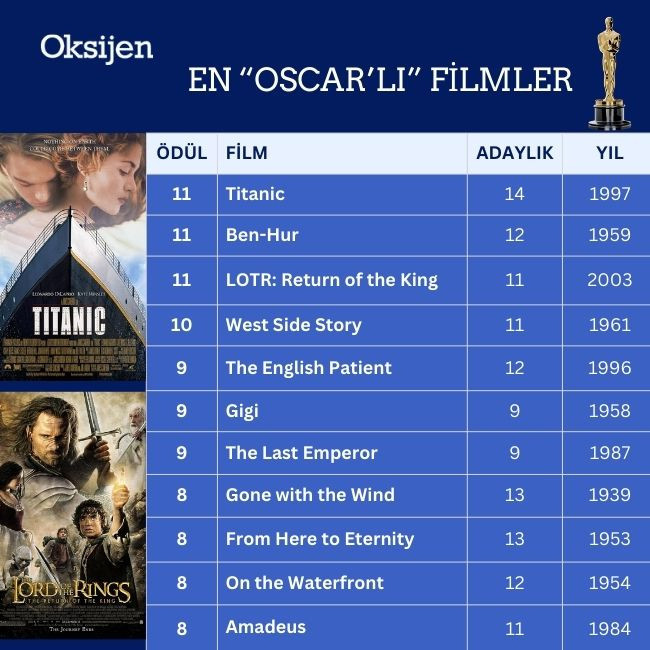 Peki en çok Oscar kazanan filmlerde son durum nedir? Bakalım bu gece “Savaş Üstüne Savaş” ya da “Günahkarlar” bu listeye dahil olabilecek mi?