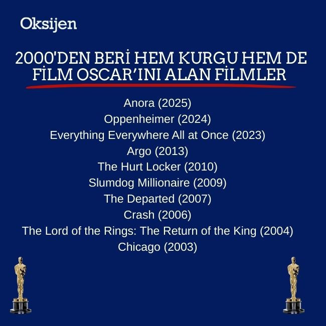 Son 25 yıldır “En İyi Kurgu ödülünü alan, En İyi Filmi de alır” öngörüsü ise sadece 10 kere çalıştı. Bakalım bu sene “Savaş Üstüne Savaş” da bu istatistiğe eklenecek mi?