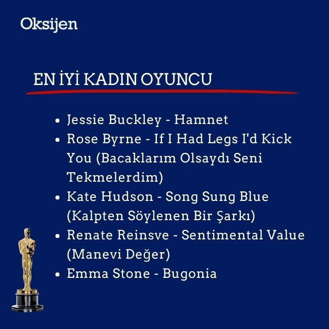Bu yılki Oscar’ların en garanti görünen tahmini En İyi Kadın Oyuncu kategorisinde; “Hamnet”teki olağanüstü performansıyla Jessie Buckley. Bahislerde bile yüzde 97 civarında bir oranı var.