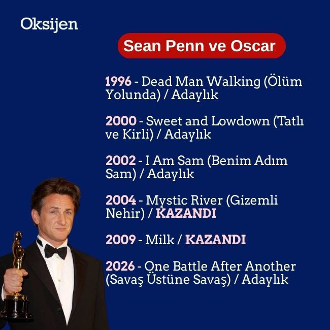 Ayrıca Sean Penn bu gece Oscar alırsa, “3 Oscar almış aktörler” arasına girecek. Henüz 4 Oscar almış aktör yok bu arada. Ama 4 Oscar almış bir kadın oyuncu var: Katherine Hepburn. En yakın takipçisi de 21 kez aday olmuş 3’ünü kazanmış Meryl Streep.