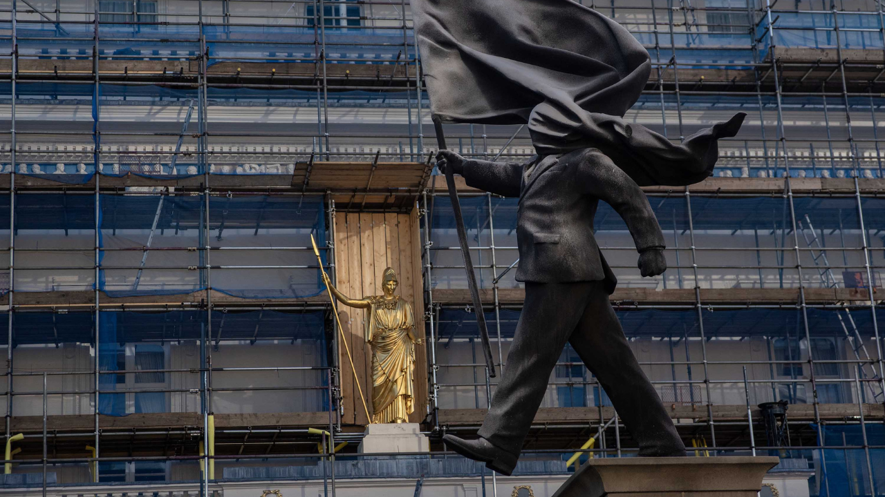 Dünyaca ünlü sokak sanatçısı Banksy, Londra'nın merkezinde ortaya çıkan büyük bir heykelin kendi eseri olduğunu doğruladı. İmzasını taşıyan heykel, yüzünü örten bir bayrak taşıyan, bir kaideden öne doğru yürüyen takım elbiseli bir adamı tasvir ediyor. Heykel, görkemli mimarisi ve Edward VII, Florence Nightingale ve Kırım Savaş Anıtı'nın heykelleriyle tanınan tarihi bölge St James's Waterloo Place'te yer alıyor.