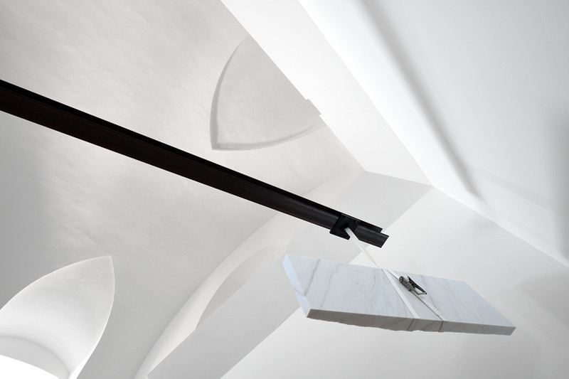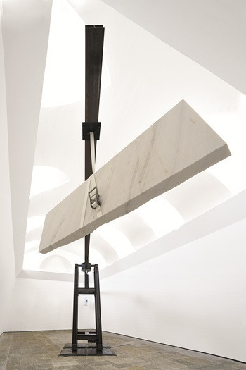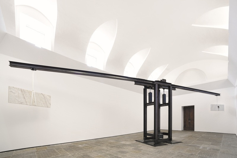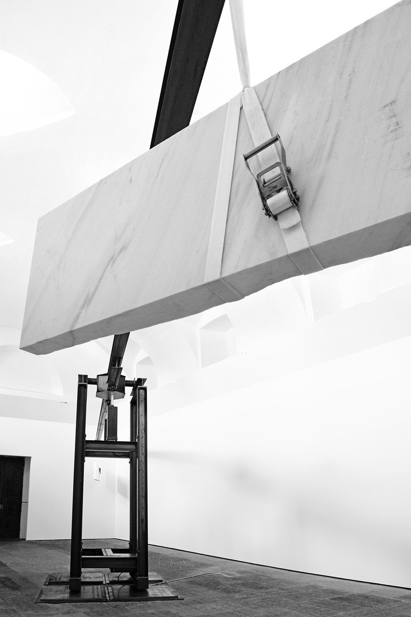 Sassolino için mermer yalnızca bir gelenek sembolü değil, aynı zamanda insanlık durumunun zamana yayılan canlı bir temsili. Tarih boyunca kalıcılık ve anıtlarla ilişkilendirilen mermer, burada kırılgan bir denge arayışına dönüşüyor. Ağırlığın yarattığı gerilim yapıyı sınırlarına kadar zorlarken, metalin iniltisi arzunun paradoksunu yankılıyor: bitmeyen bir döngü, tatmin ve yeniden doğan eksiklik.