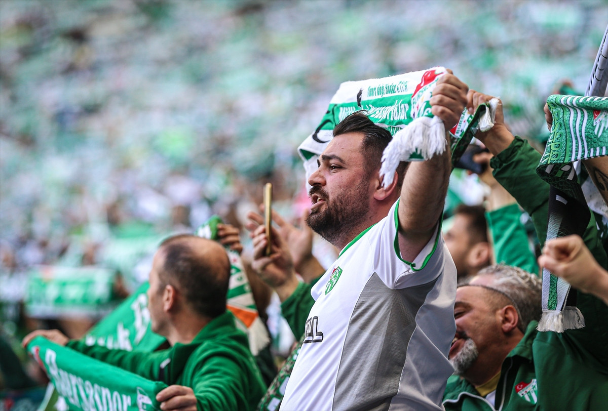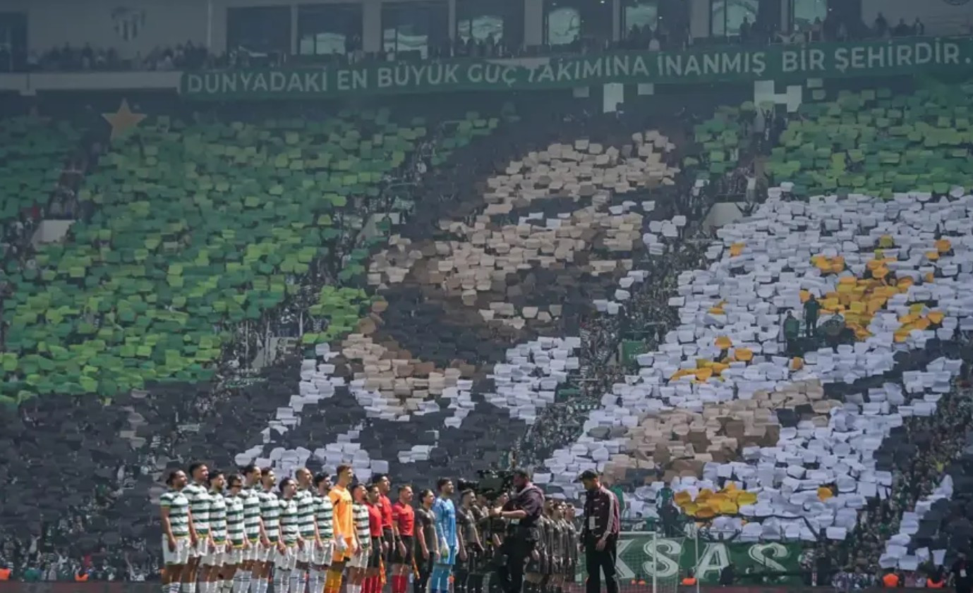 Maçtan önce binlerce taraftar, yapılan duyurunun ardından kartonları kaldırdı ve adeta görsel bir şov yaptı. Kulüp başkanı Enes Çelik'in yer aldığı koreografide, Bursaspor'un kazandığı şampiyonluk kupaları resmedildi.