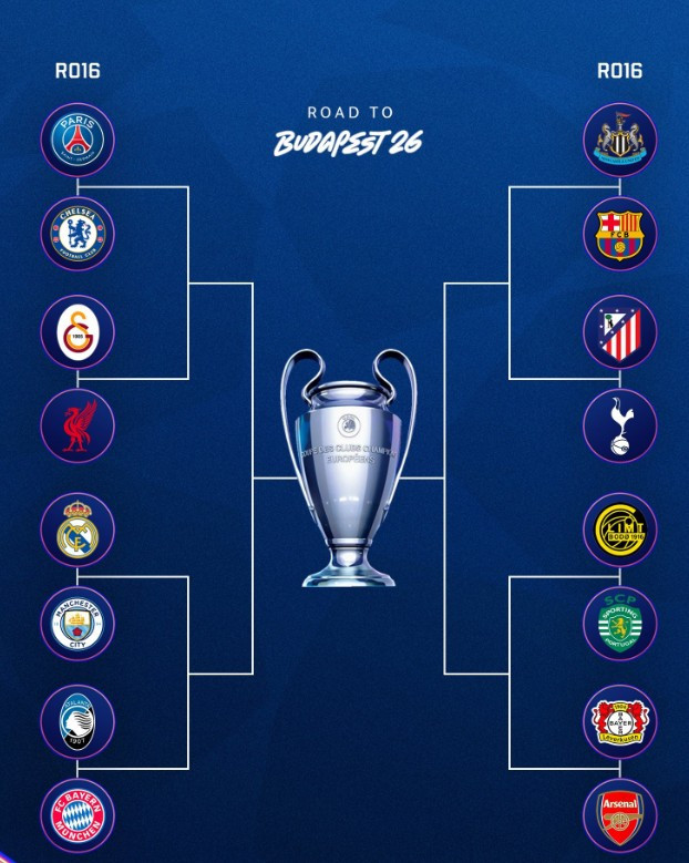 Son 16 eşleşmelerinin ilk ayak maçları 10-11 Mart, ikinci ayak maçları ise 17-18 Mart tarihlerinde oynanacak.