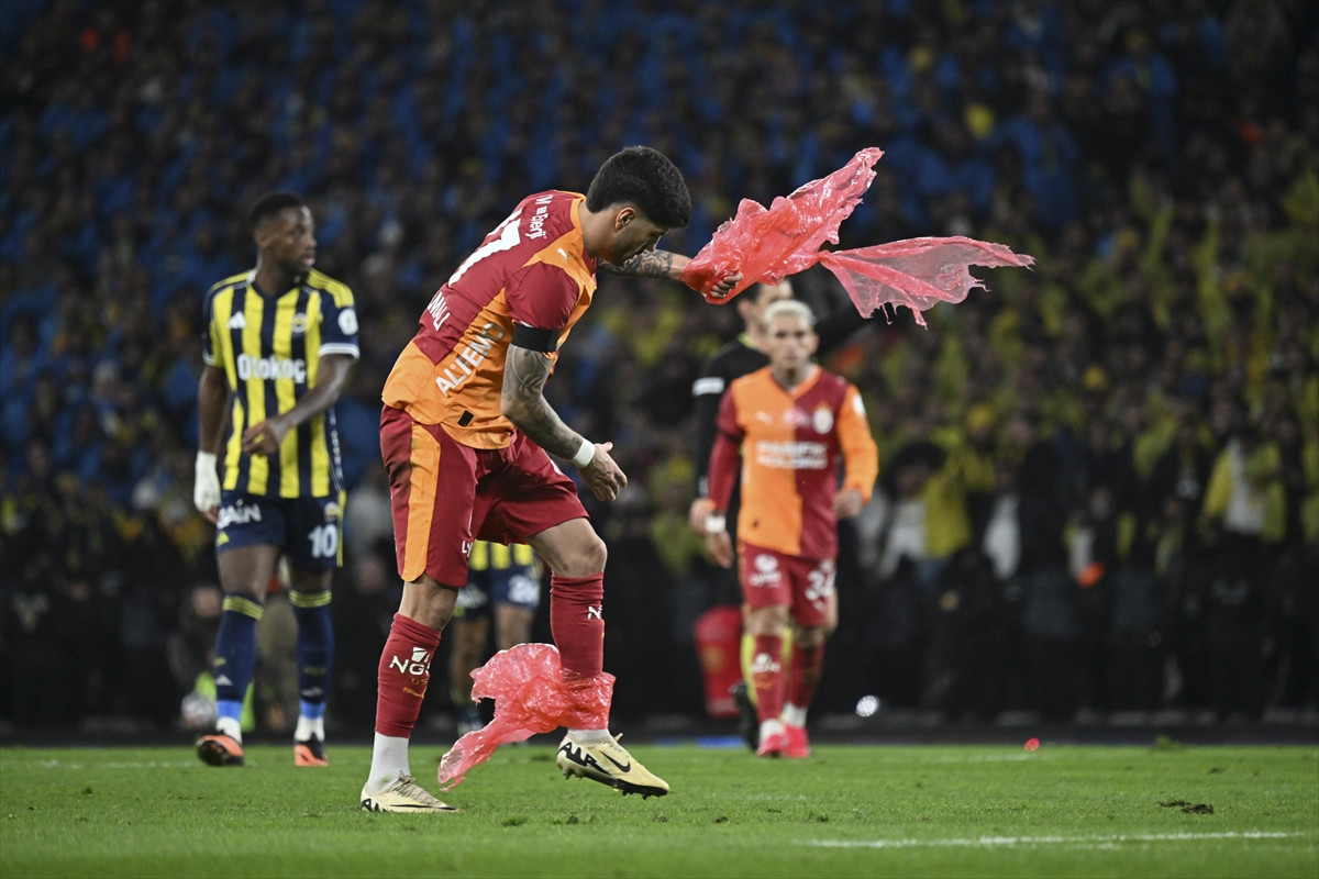 Galatasaray ile Fenerbahçe arasındaki derbi, tartışmalı bir pozisyonla başladı. Karşılaşmanın 4. dakikasında Galatasaray'da Abdülkerim Bardakci, savunmadan topu çıkartmak isterken top Mario Lemina'dan döndü.