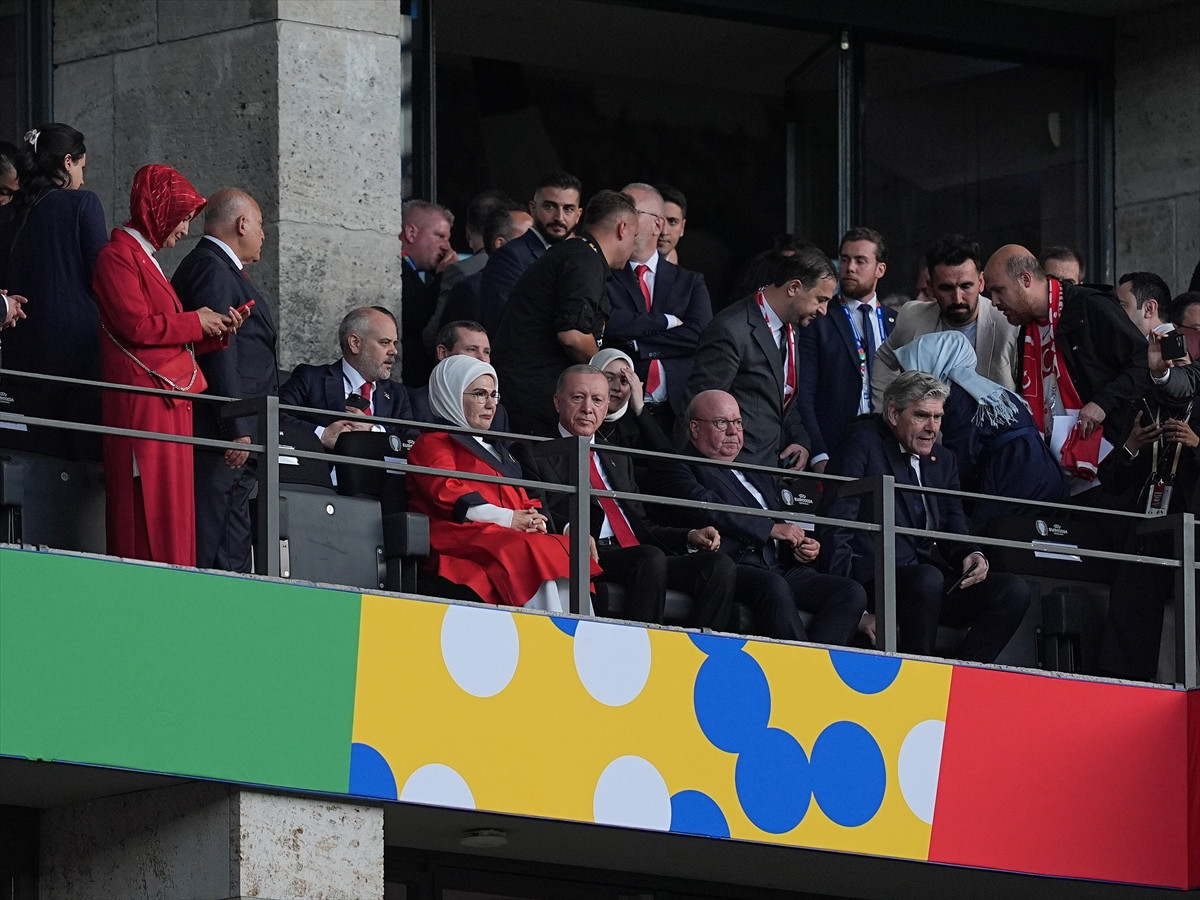 Cumhurbaşkanı Recep Tayyip Erdoğan da Türkiye-Hollanda karşılaşmasını tribünden takip etti.