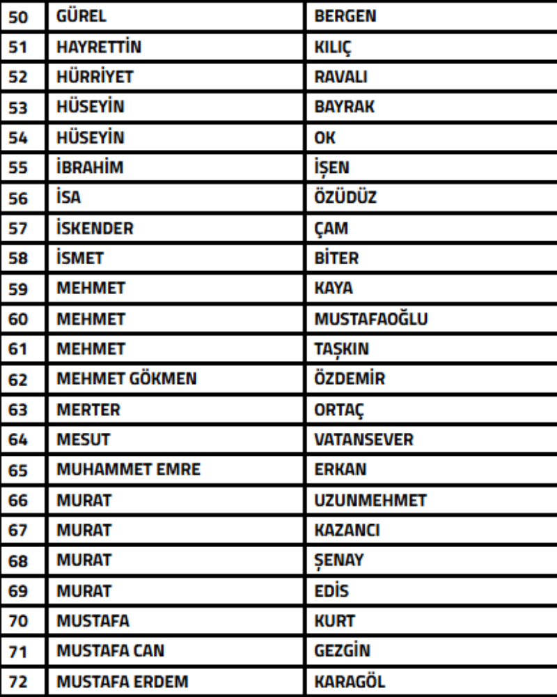 PDFK'ya sevk edilen teknik direktörlerin tam listesi şöyle: