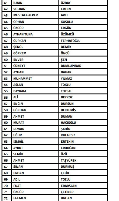 "Türkiye Futbol Federasyonu’nca yürütülen bahis soruşturması kapsamında son 5 yılda Profesyonel Liglerde Teknik Sorumlu olarak görev yapan ve görev yaptığı dönemlerde bahis oynadığı tespit edilen aşağıdaki kişilerin Futbol Disiplin Talimatı’nın 57. maddesi uyarınca 07.01.2026 tarihinden itibaren tedbirli olarak PFDK'ya sevk edilmesine karar verilmiştir.