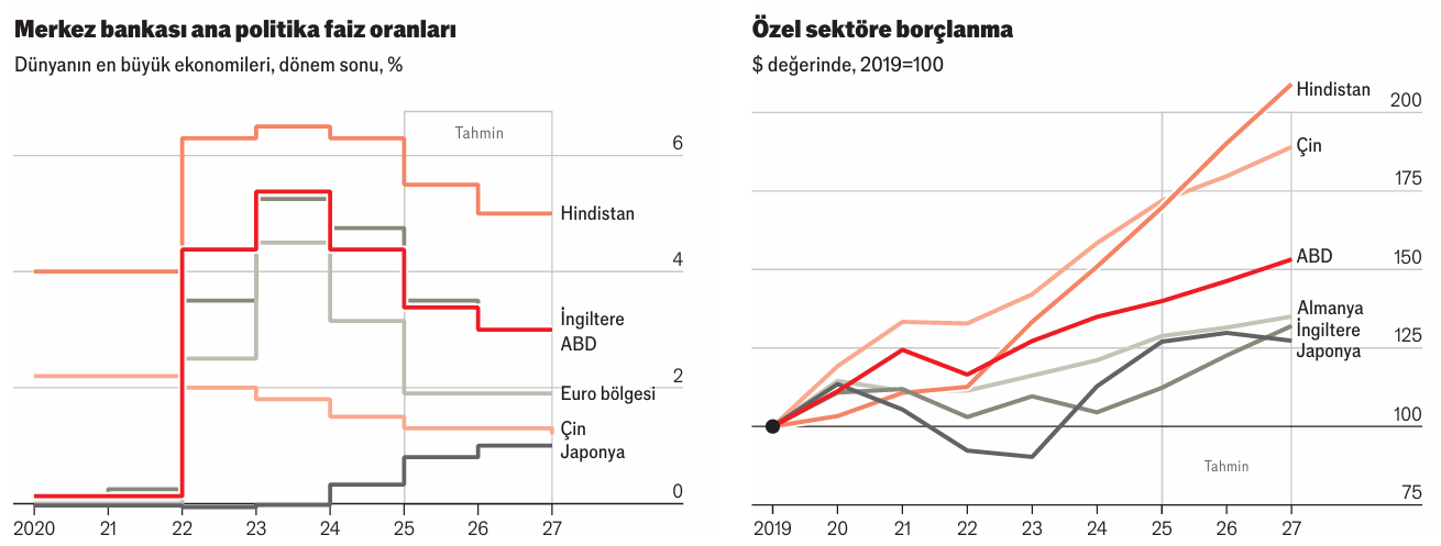 Borç verenler ve borç alanlar 2025’te ve sonrasında yakından izlenecek. 2020’de merkez bankaları pandeminin vurduğu ekonomilerini desteklemek için küresel olarak faiz oranlarını düşürdü, daha sonra 2022’de arz sıkıntıları ve tüketici talepleri enflasyonu tetikleyince faiz oranlarını keskin şekilde yükseltti. 2024’te daha düşük enflasyon merkez bankalarını tekrar faiz oranlarını düşürmeye itti, bu 2025’te de devam edecek. Mevduat bankalarının müşterilerine uyguladığı oranlar da artacak. Ekonomisini güçlendirmek isteyen Çin hükümeti bir yandan balonlara dikkat ederken diğer yandan bankaları daha fazla kredi vermeye itecek. Avrupa ve Japonya geriden gelirken Amerika, çok daha fazla sermaye kullanacak.