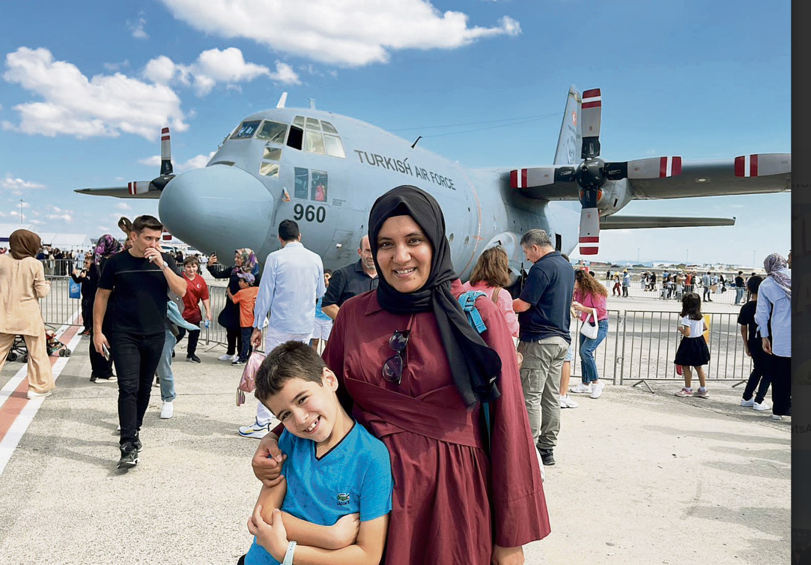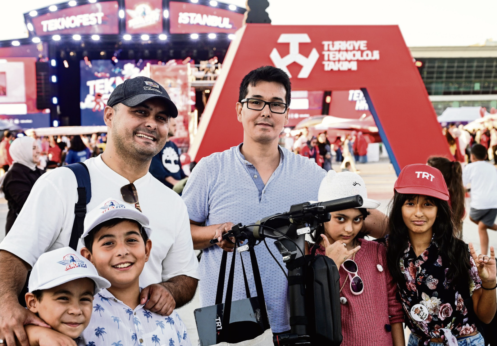 Sırada başka bir aile var. 36 yaşındaki Mehmet Çavuşoğlu aslen Irak Kerküklü, 39 yaşındaki eşi Firuze Hanım ise Kırımlı... Onlar da iki çocuklarıyla Sefaköy’den gelmişler. Metehan iki yaşında, Cihangir ise altı yaşında. Mehmet Bey, “Benim ailem 32 yıl önce Türkiye’ye göç etti. Burası bizim vatanımız ve böyle güzel şeyleri görmek insanı gururlandırıyor. İnşallah bizim çocuklarımız da buradaki uçaklar gibi uçaklar üretir, o uçakları kullanır” diyor.