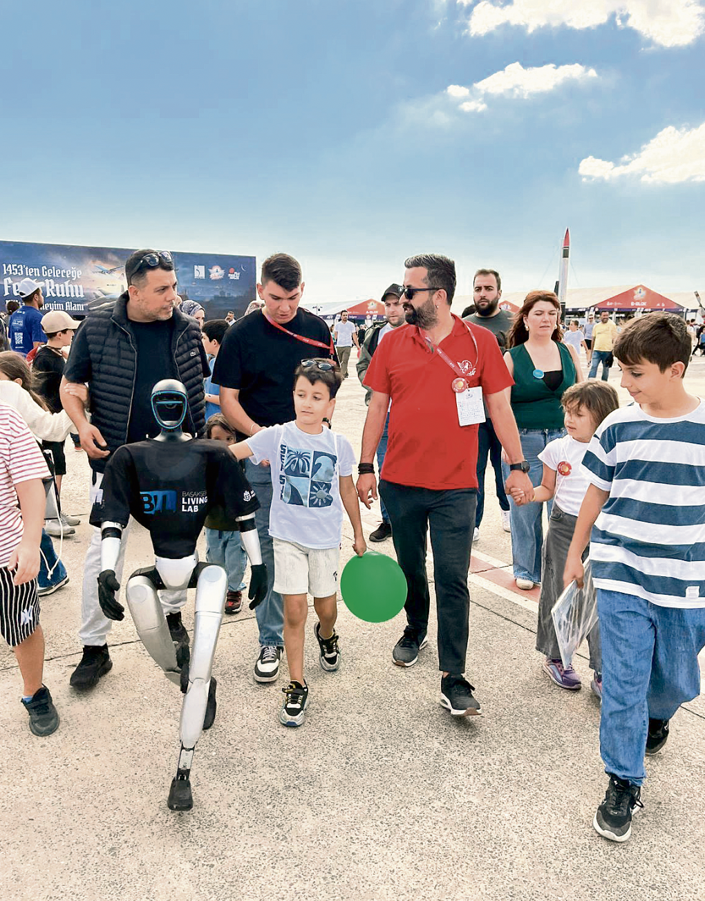 Pazar günü bu kez saat 1’de Atatürk Havalimanı’ndayım. Bugün daha da kalabalık!.. Bir bakıyorum çocuklar Başakşehir Belediyesi’nin robotunun peşine takılmış... Robot duruyor, el kaldırıp selam veriyor, sonra tekrar yoluna devam ediyor. Çocuklar her hareketini merakla izliyor...