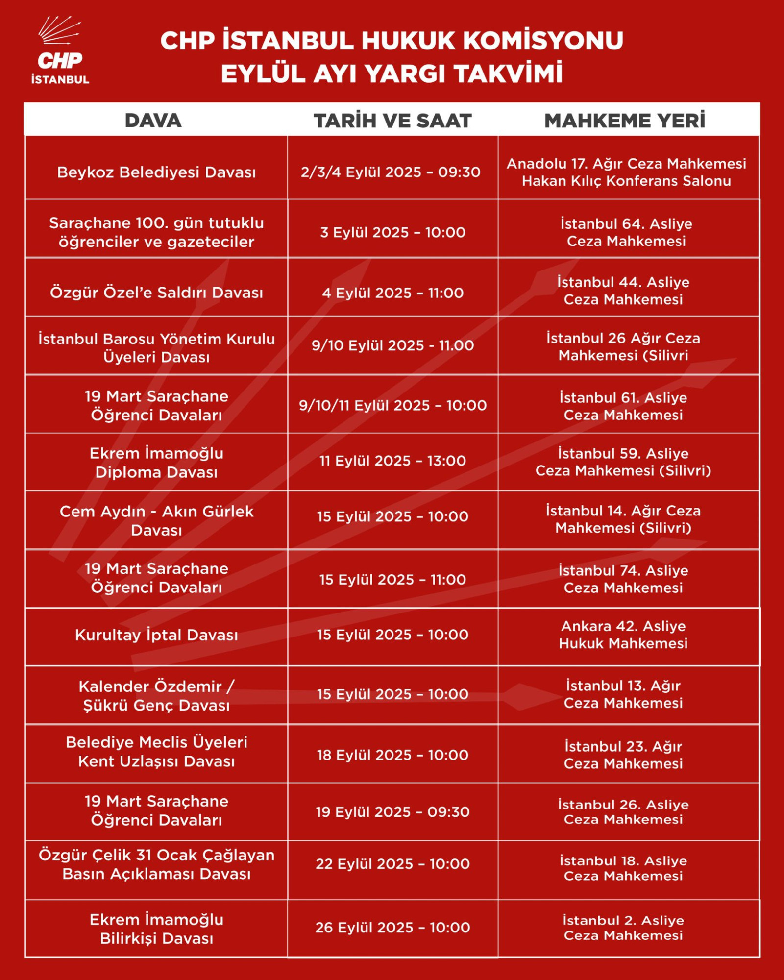 CHP’nin eylül ayı boyunca 14 davası görülecek