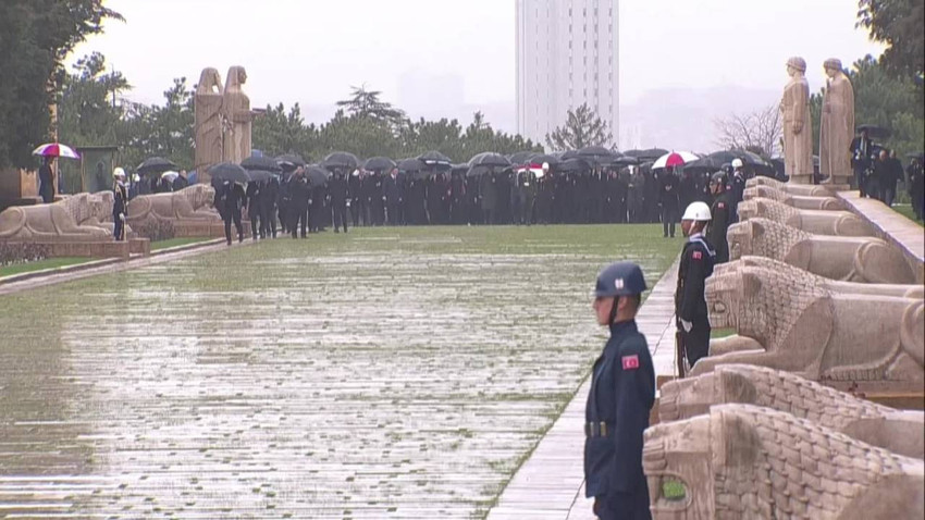 TBMM Başkanı Numan Kurtulmuş ve beraberindeki devlet erkanı, 23 Nisan Ulusal Egemenlik ve Çocuk Bayramı dolayısıyla Aslanlı Yol'dan yürüyerek Atatürk'ün mozolesine geldi. Yürüyüş şiddetli yağmur altında gerçekleştirildi. Mozoleye çelenk bırakılmasının ardından saygı duruşunda bulunuldu ve İstiklal Marşı okundu. Misak-ı Milli Kulesi'ne geçen TBMM Başkanı Kurtulmuş, Anıtkabir Özel Defteri'ni imzaladı. Kurtulmuş, deftere şunları yazdı: