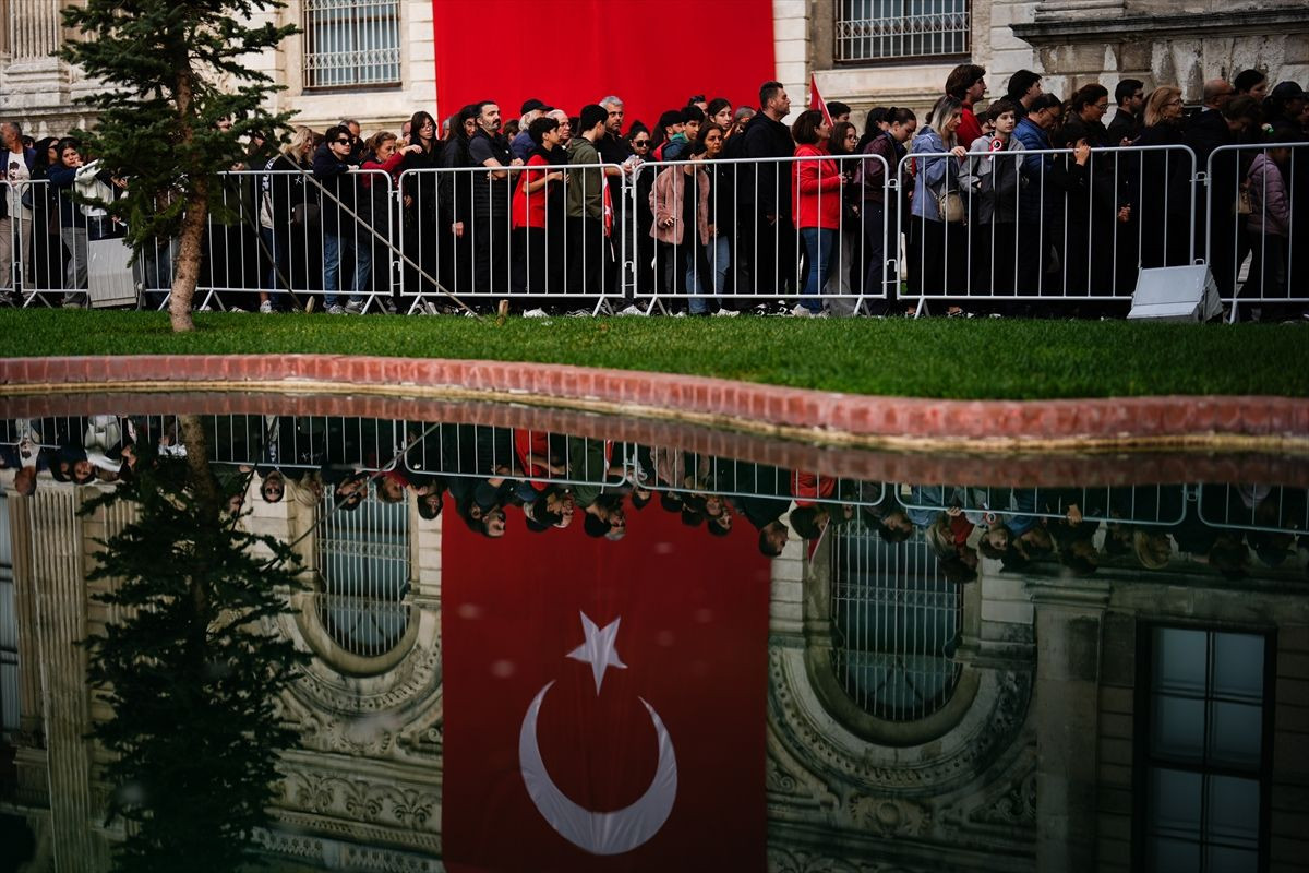 Dolmabahçe'den Beşiktaş'a uzanan kalabalık böyle görüntülendi.