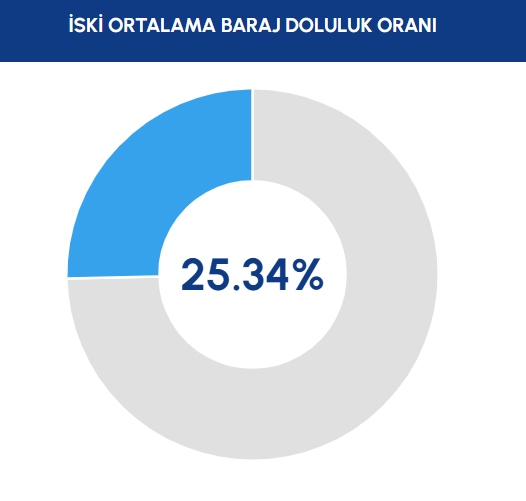 İstanbul’a su sağlayan barajlardaki doluluk oranlarında düşüş sürüyor. İstanbul'daki Ömerli, Darlık, Elmalı, Terkos, Alibey, Büyükçekmece, Sazlıdere, Istrancalar, Kazandere ve Pabuçdere barajlarında toplam su oranı yüzde 25,34 olarak ölçüldü.