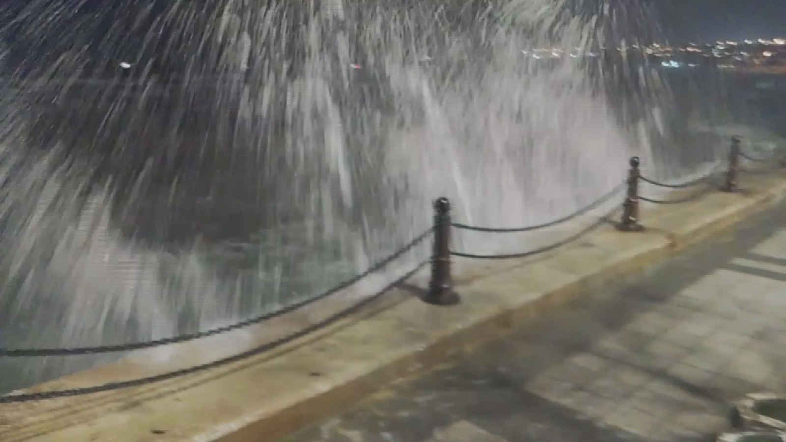 Fırtına, İstanbul Havalimanı'nda da etkili oldu. Yolcuların rüzgar nedeniyle uçan reklam panolarına tutunduğu anlar kameralara yansıdı. Silivri'de lodos nedeniyle denizde oluşan dalgaların boyu mendirekleri aştı.